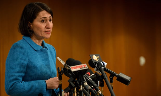 NSW premier Gladys Berejiklian gives an update on the state’s Covid outbreak on Wednesday morning. Photograph: Dan Himbrechts/AAP